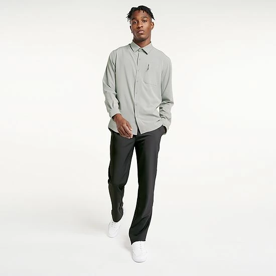 Make moves in this men’s button-down shirt from FLX. This shirt is infused with easy-going stretch fabric that is ready for your non-stop life. Part of the FLX Urban & Commuter Collection. City styles infused with on-the-go features to level up your daily routine.