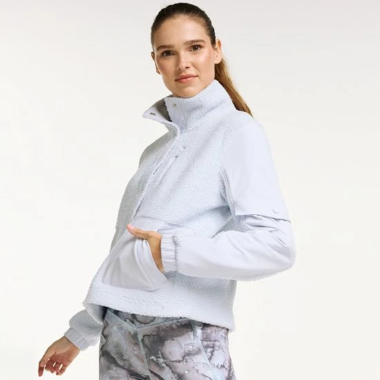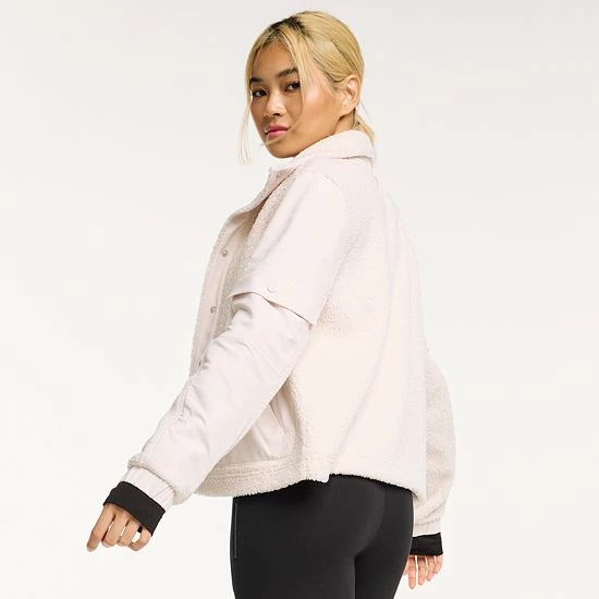 Layer up for a stylish, cool-weather look with this women’s jacket by FLX. The mixed-media design lends a chic look for on-the-move comfort.