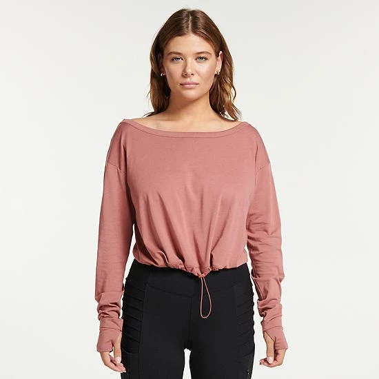 Relevant, on-the-go style. Made with a soft jersey construction and a custom fit, this women’s boatneck top from FLX offers carefree comfort for everyday wear.