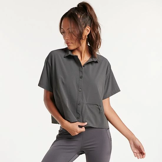 From your office desk to happy hour, this women’s FLX cropped shirt lends effortless, versatile style. Its breathable woven design gives you a polished look all-day long.
