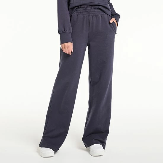 Meet your new go-to sweats with these women’s FLX sweatpants, featuring a roomy wide-leg cut and smocked waistband for an custom, comfortable fit. Part of FLX Travel & Leisure Collection. Laid-back looks that are easy to care for and ready to go the distance.