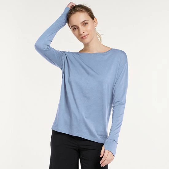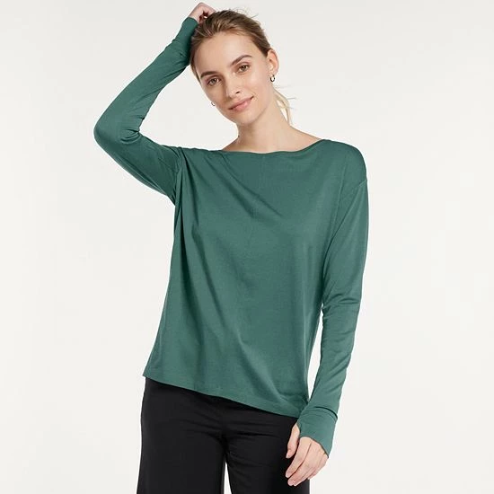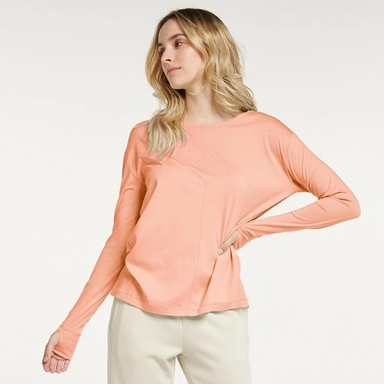 - Drop-shoulder long sleeves with thumbholes